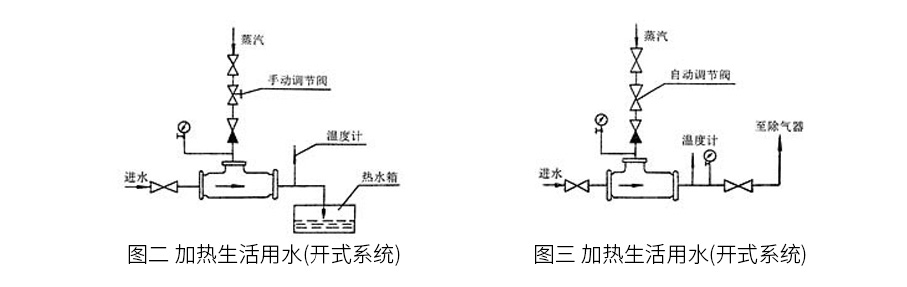 2. 用于浴室加熱熱水送入水箱,代替熱水箱中原高噪聲、強(qiáng)振動(dòng)的蒸汽直接加熱方式(花管)。(圖二)